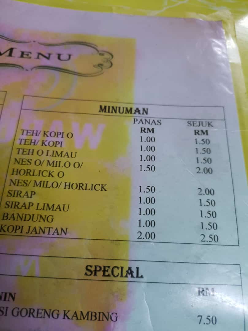 - Affordability: Most beverages are priced at just RM 1, making dining here incredibly budget-friendly.